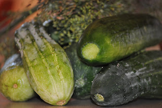 5-6 medium sized cukes fresh from the garden. You can use the tiny ones too!