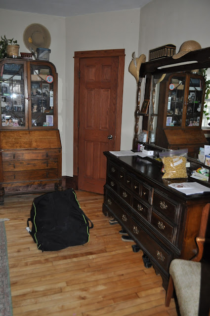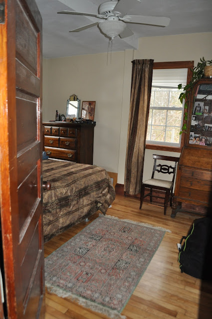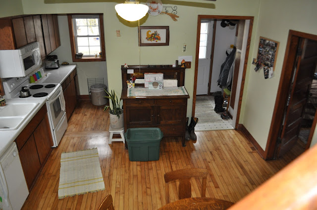 You can see the door to the master bedroom on the right. This is typical old farmhouse to have the master right off the kitchen.