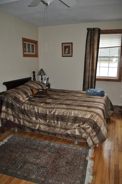 Notice the window in the bedroom on the left wall. This was a recent addition. They added 7 feet onto the house to install a shower in the lower bathroom. That window used to look outside.