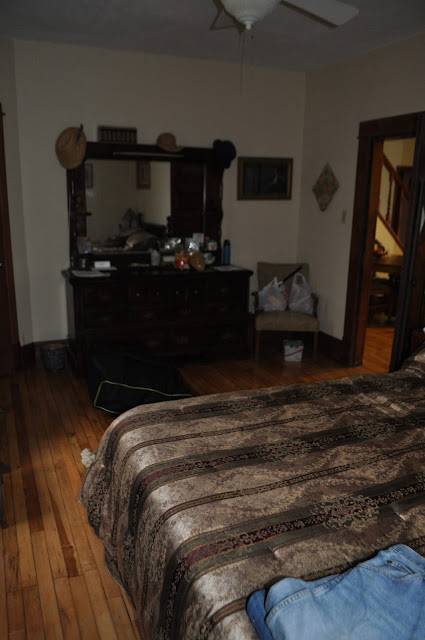 This was my old room. The only thing that is the same as when I lived here is the paint color and the drapes. Hardwood floors exposed in here. Faces east over the garden.