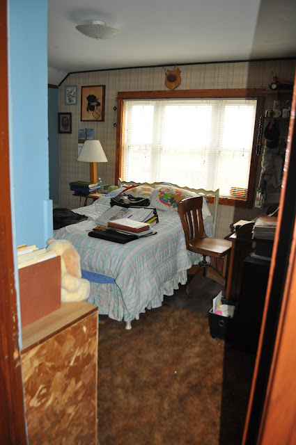 We’ll call this bedroom number 1. It was my little brothers old room. It faces west and overlooks the farm. Notice that lovely carpet and wallpaper.