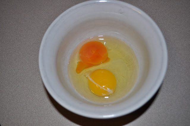 Can you guess which is which? The upper egg is directly from the farm. The bottom egg is from the grocery store.