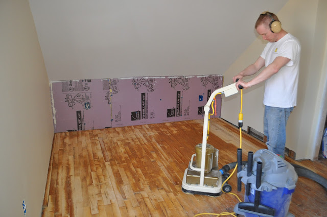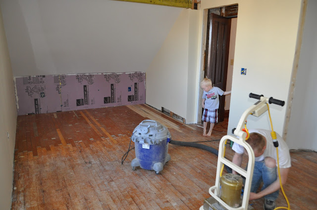 He sanded for over 7 hours! I went up to see how he was doing 2 hours into it and he said he almost fell asleep it was so boring! I took over for a while. The boards in the closet were the worst because they were painted – it took for-ever to get them sanded down! The rest of it went pretty quick.