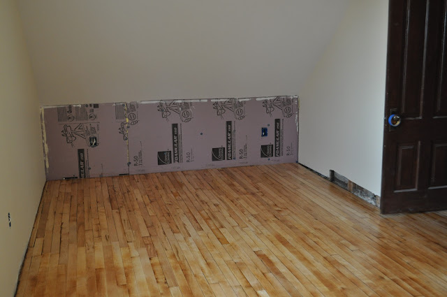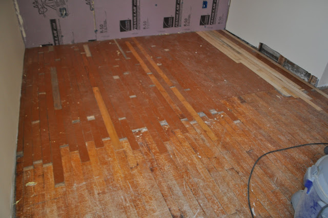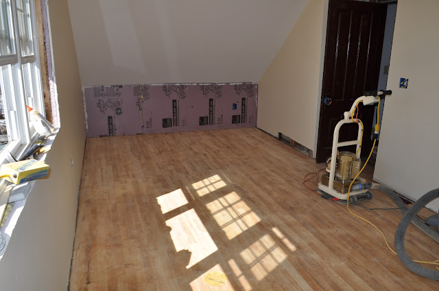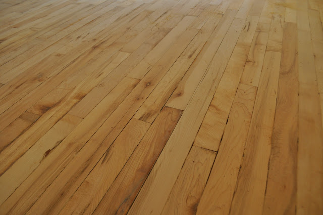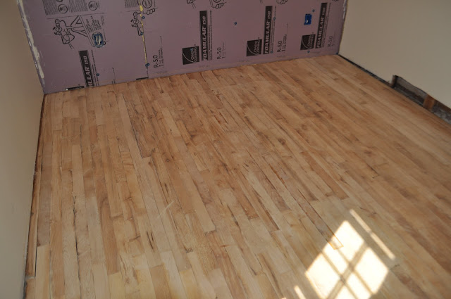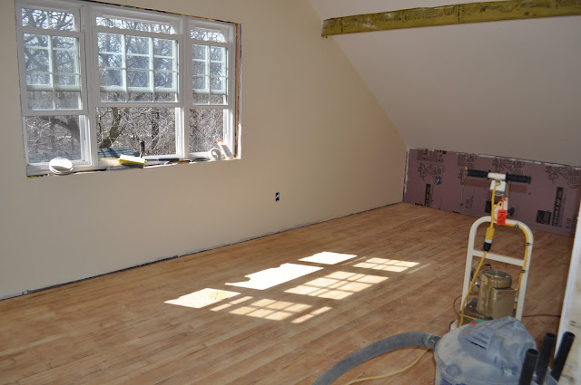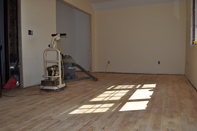 I will post a better picture of the finished floors later. He has been working on installing the new door and trim.